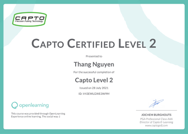 HLV Lương Xuân Phú, Lead Golf Instructor tại Everygolf, là người đầu tiên đạt được chứng chỉ TPI Certified Power Level 03 tại Việt Nam và là người thứ hai tại Việt Nam có chứng chỉ TPI Certified Golf Level 03.